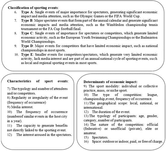 - Sánchez, P.; Barajas, A. Sport events as generators of economic impact: Key factors and measurement. In Proceedings of the XXI International Congress of AEDEM, Budapest, Hungría, 3–4 September 2012. [Google Scholar]