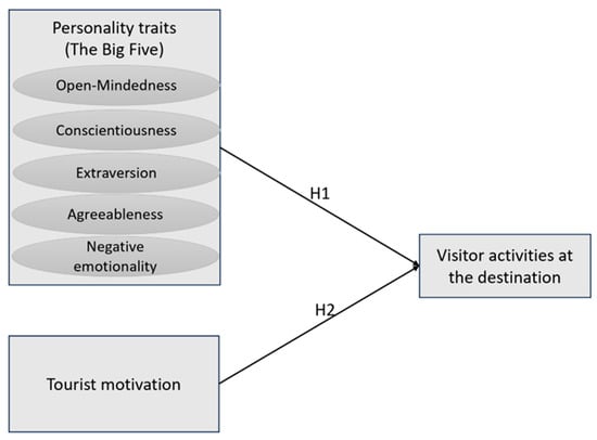Despite previous research on the relationships between personality traits and behaviours [19], travel intention [20], tourism information search [21], the correlation between personality traits and travel motivations [10], and visitor activities [9], there is a dearth of studies investigating the combined influence of personality traits and travel motivations on visitor activities within a destination. This study fills this gap by revealing the implications of personality traits and travel motivations for visitors’ activities at a destination.