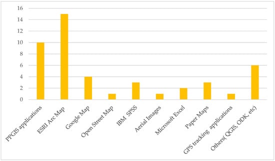 The widespread use of GIS-based tools such as ESRI Arc Map and PPGIS applications demonstrate a strong preference for spatial methodologies in public participation [,,,,,,,,,,,,,,,,,,,,].