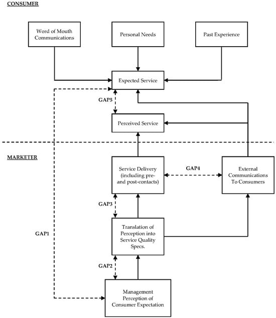 - Parasuraman, A., Zeithaml, V., & Berry, L. (1985). A Conceptual model of service quality and its implications for future research. Journal of Marketing, 49, 41–50. [Google Scholar] [CrossRef]