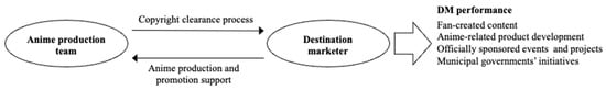 Tourism is generally driven by a network of multiple stakeholders, and tourism research has consistently focused on stakeholder relationships (Beaumont & Dredge, 2009; Beritelli, 2011; Bramwell & Lane, 2000; Heitmann, 2010; Reed, 1997; Selin, 1994; Selin & Beason, 1991; Wilke et al., 2019). Among these discussions, scholars such as Ford et al. (2012) and Saito and Ruhanen (2017) have argued over issues arising from power dynamics. Jamal and Getz (1995), for example, highlighted the influence of external capital. In anime tourism, DM inevitably faces challenges in building relationships with anime production companies or copyright holders, as destination activities rely on copyrighted elements such as characters, voice actors, and background visuals. In other words, destination marketers are responsible for initiating and maintaining good relationships with copyright holders, who are external private entities (Beeton, 2016).