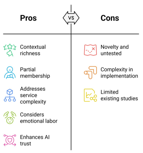 This iterative strategy ensures a contextually rich understanding of airline customer preferences. Traditional statistical methods alone typically enforce binary or strictly categorical cutoffs, while fuzzy set theory allows partial membership across categories—for instance, letting an individual be 0.6 “satisfied” and 0.4 “neutral” rather than forcing a single label (Alamá-Sabater et al., 2019; Lynch, 2019). As illustrated by the Conceptual Framework in Figure 3, these methods directly address factors such as service complexity, emotional labor, and AI trust, all of which can influence passenger choices. To date, few—if any—studies have specifically used fuzzy set techniques to dissect passenger service preferences in the airline sector, underscoring the novelty of this approach.
