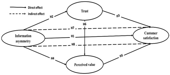 Trust mediates the relationship between information asymmetry and customer satisfaction.