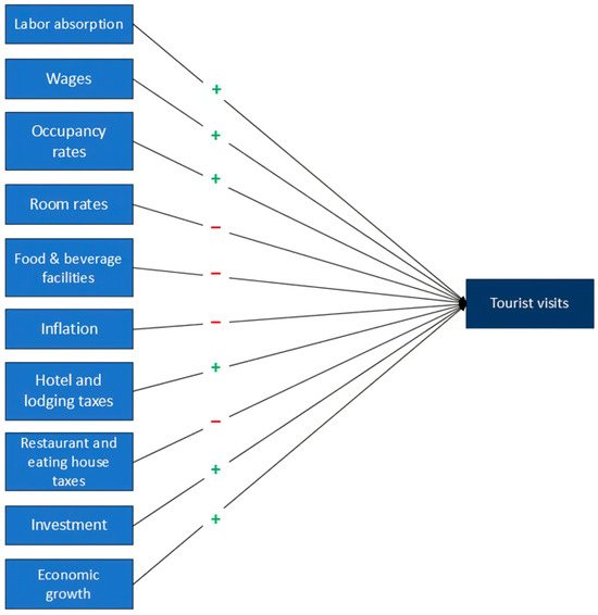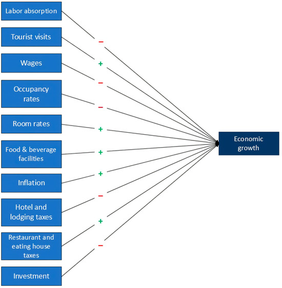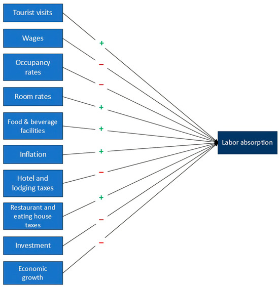 - Null hypothesis (H0): Tourist visits, wages, economic growth, occupancy rates, room rates, food and beverage facilities, inflation, hotel and lodging taxes, restaurant and eating-house taxes, and investment significantly influence labor absorption;