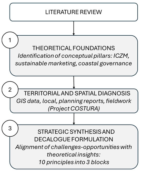 Methodological framework for the construction of the Blue Marketing Decalogue (BMD), integrating theory, territorial analysis, and strategic synthesis.