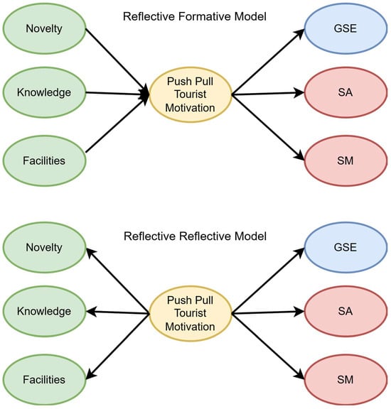 Reflective–reflective model vs. reflective–formative model of push–pull tourist motivation.