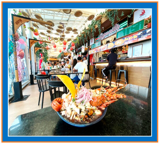 The ‘Mercado del Río’ food hall in Guayaquil, Ecuador, was chosen as a case study because it is the first establishment in this city to meet these characteristics and because of its high popularity in hosting culinary events. A comparison picture of a dish served in a food hall is provided in Figure 1.