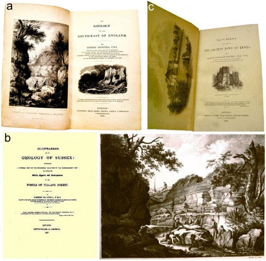 - Cleevely, R. J., & Chapman, S. D. (2000). The two states of Mantell’s Illustrations of the geology of Sussex …; 1827 and c. 1829. Archives of Natural History, 21(1), 23–50. [Google Scholar] [CrossRef]