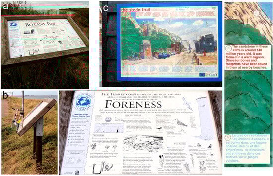 - Štrba, L., & Palgutová, S. (2024). Geoheritage interpretation panels in UNESCO global geoparks: Recommendations and Assessment. Geoheritage, 16(96), 1–25. [Google Scholar] [CrossRef]