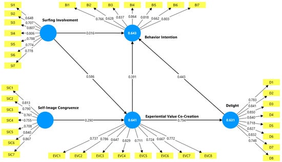 Surfing involvement has a positive and significant effect on behavioral intention mediated by experiential value co-creation and delight.