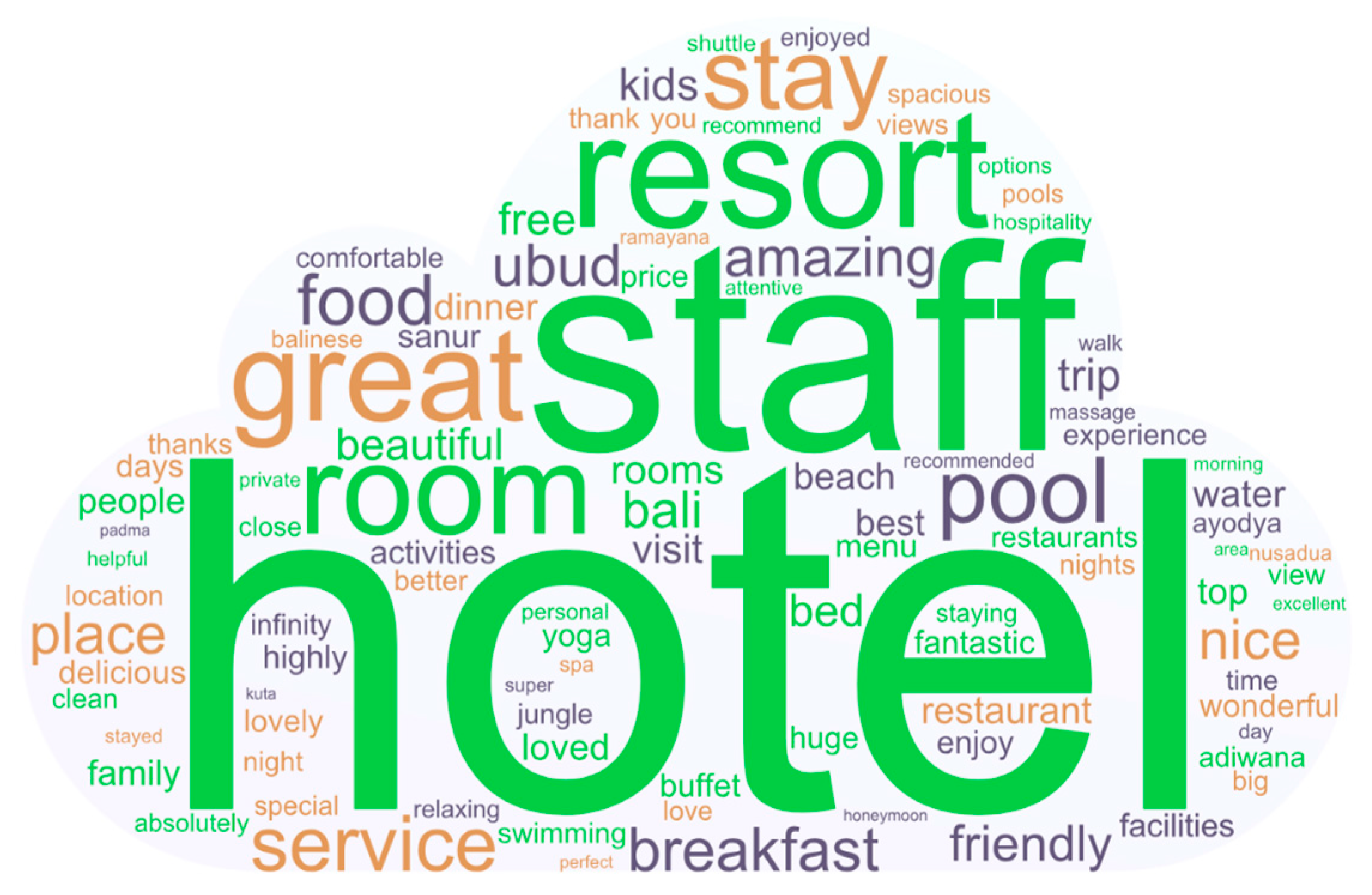 - Williady, A., Wardhani, H. N., & Kim, H. S. (2022). A study on customer satisfaction in Bali’s luxury resort utilizing big data through online review. Administrative Sciences, 12(4), 137. [Google Scholar] [CrossRef]