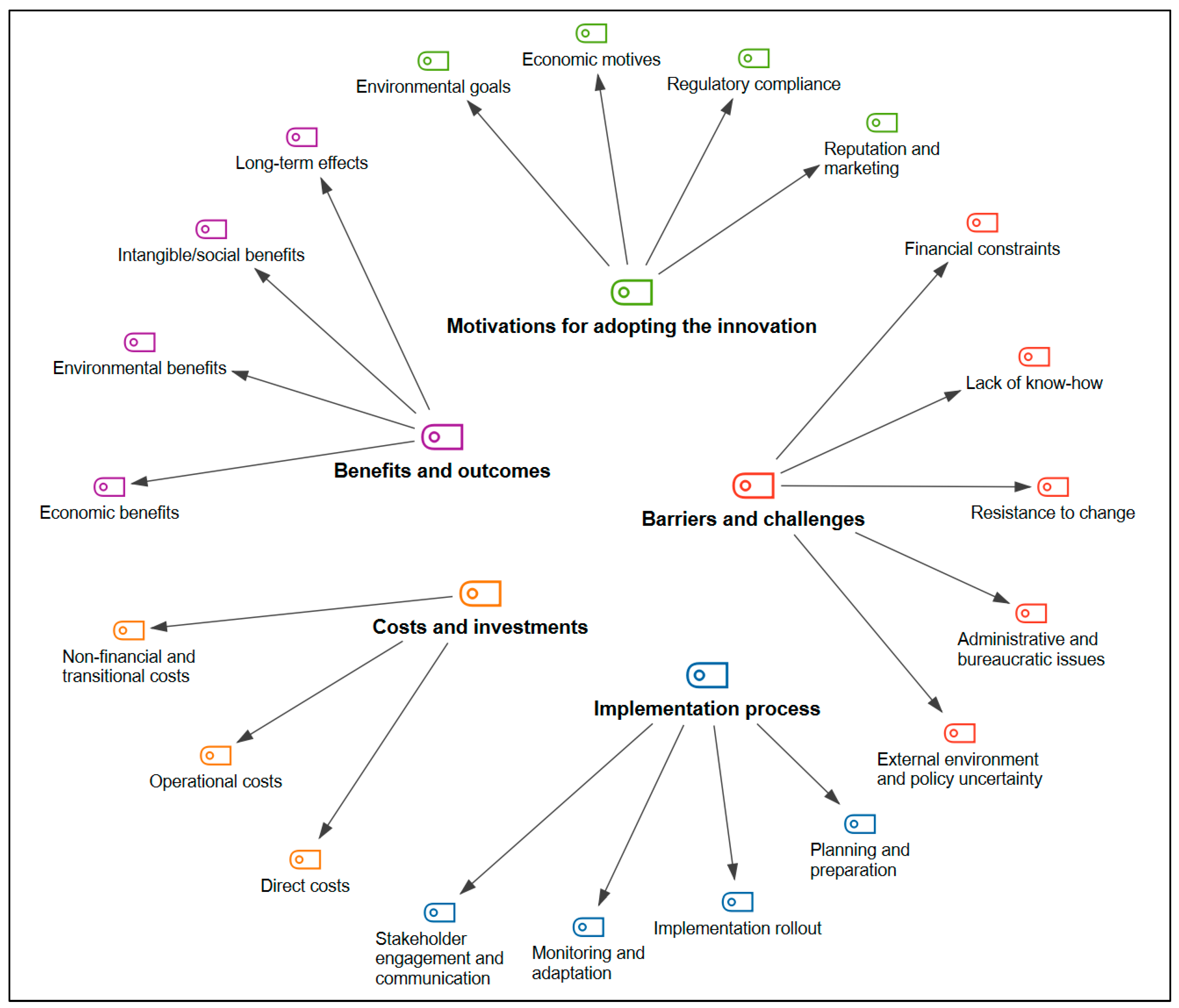 - Motivation (external intervention): A government grant acted as a catalyst for initiating the investment. This reflects a diffusion factor: an external incentive that lowered perceived risk and increased the relative advantage of adoption. Triangulated evidence from interviews with owners, grant documentation, and financial plans confirmed that without this incentive, the hotel likely would not have proceeded due to the associated financial risks. Later, ISO 14001 certification served a similar role, reinforcing adoption by increasing observability and legitimacy in the market.