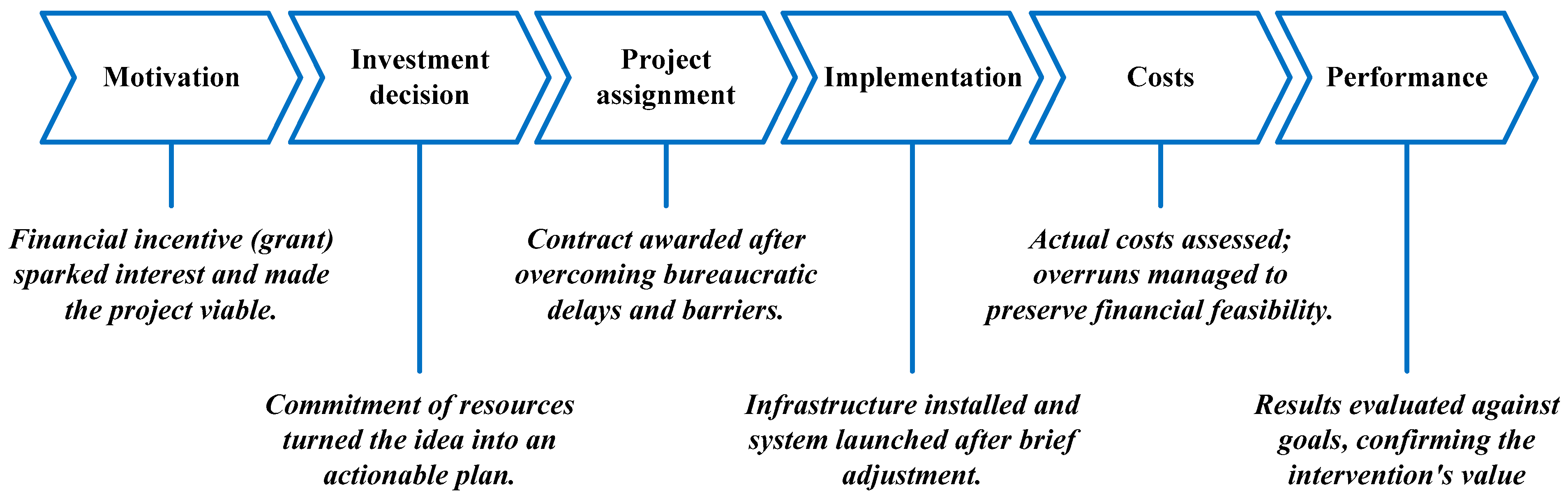 - Project assignment and implementation barriers: The next step involved assigning the project to a contractor. During this phase, implementation barriers began to emerge. Bureaucratic requirements caused delays and necessitated adjustments to the original plan, requiring additional managerial effort. Cross-checking manager interviews with correspondence and dated project files confirmed how these delays developed. The manager’s active role was evident: he personally handled licensing paperwork, re-sequenced procurement tasks, and reorganized staff schedules to keep other hotel operations unaffected. These challenges were addressed through organizational learning, as the manager adapted routines and reallocated resources to resolve bottlenecks.