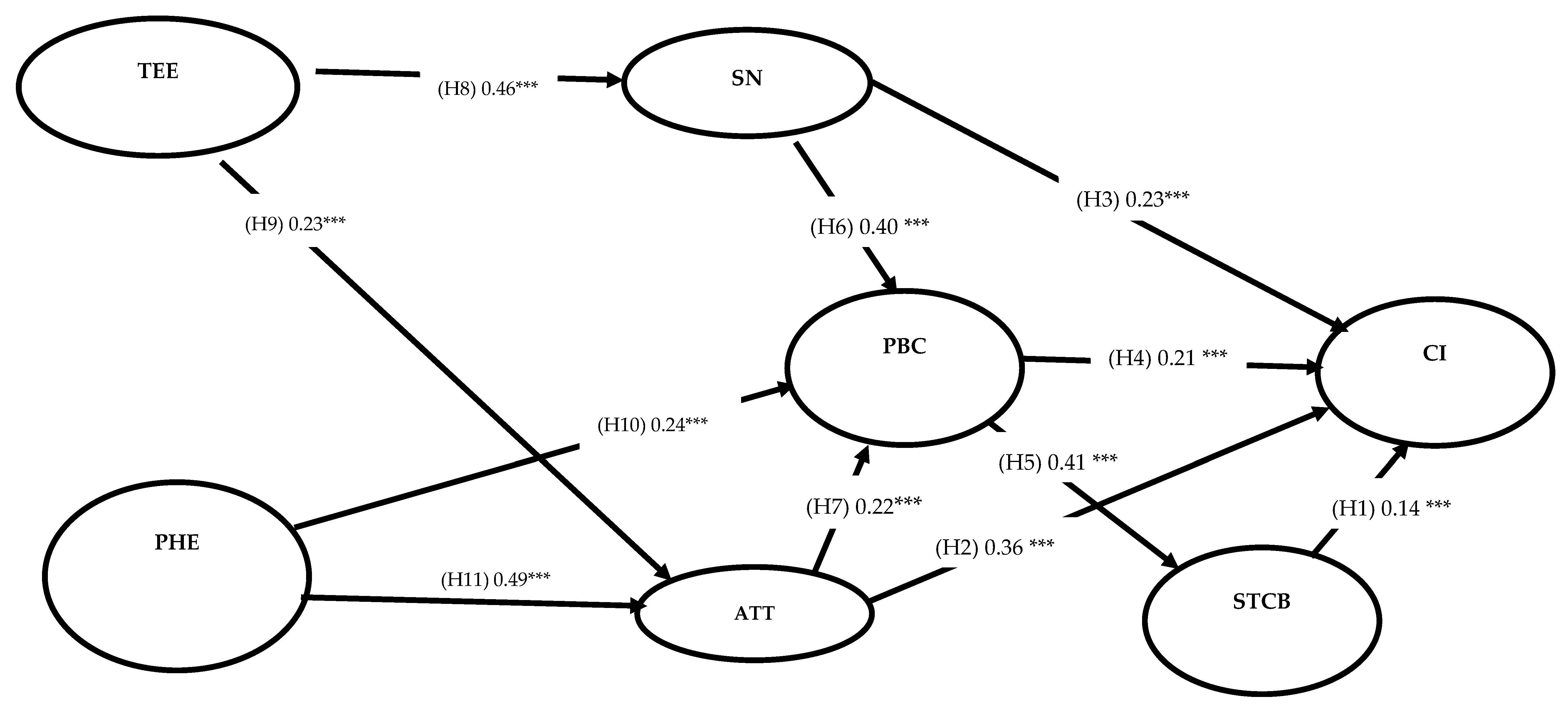 | H1 | STCB → CI | 0.14 | 0.046 | *** | Supported |