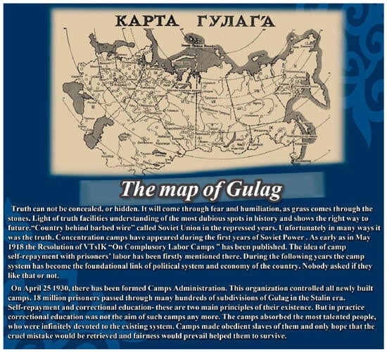- Kazakh History Channel. (2019). ALZHIR: Returned Memory [Video]. YouTube. Available online: https://www.youtube.com/watch?v=wHuU2rpV-xQ (accessed on 15 March 2025).