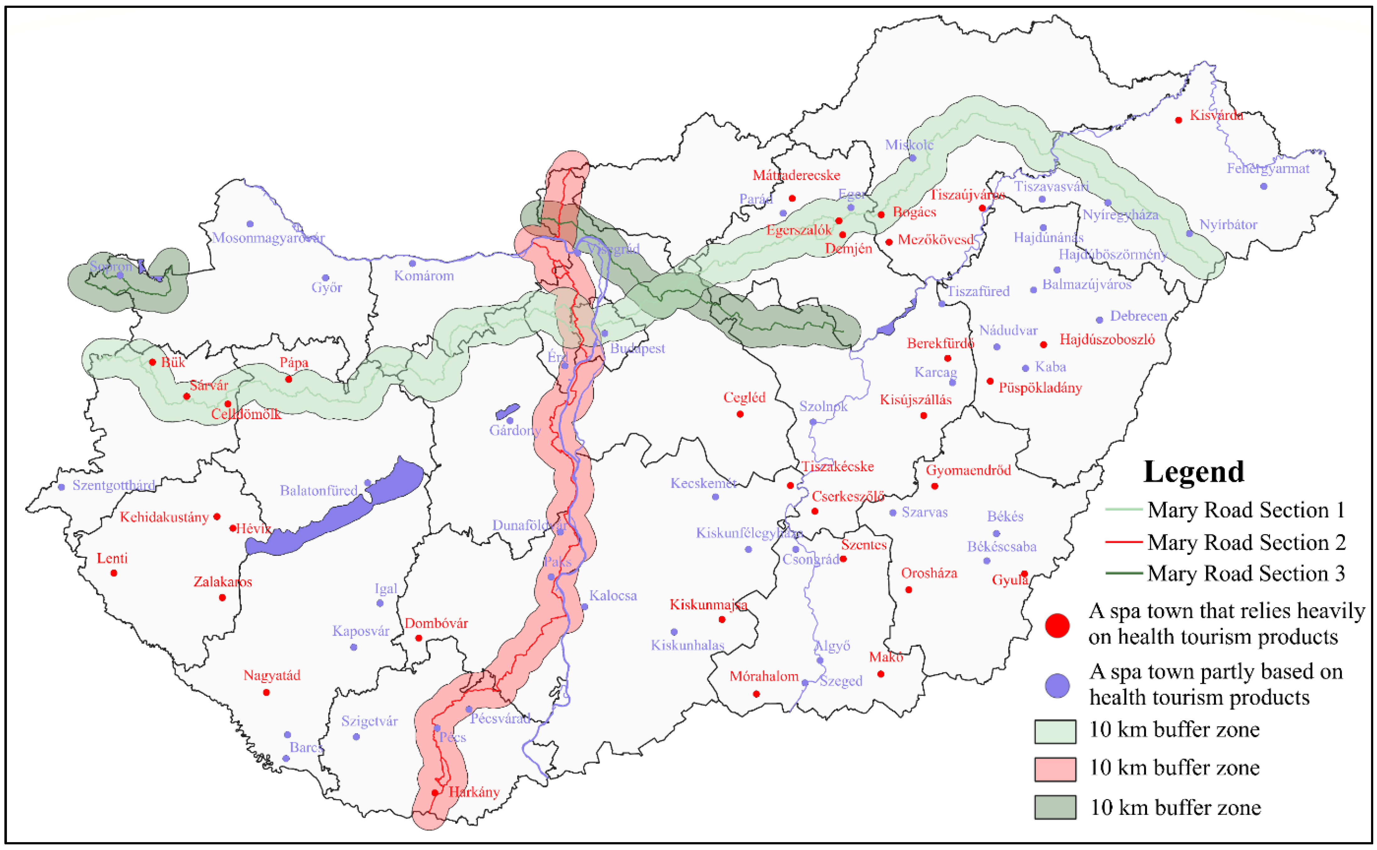 - Jónás-Berki, M., Csapó, J., Pálfi, A., & Aubert, A. (2015). A market and spatial perspective of health tourism destinations: The Hungarian experience. International Journal of Tourism Research, 17(6), 602–612. [Google Scholar] [CrossRef]
