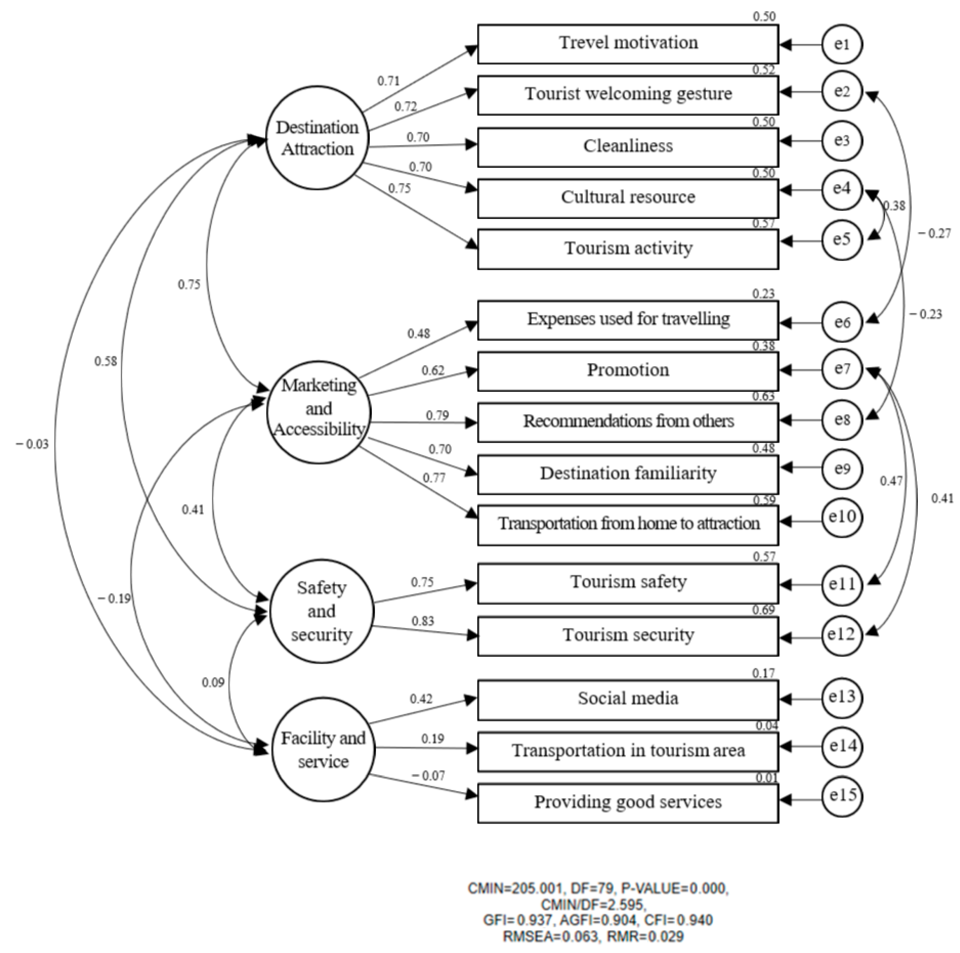 | Transportation from home to attraction | <— | Marketing and accessibility | 0.877 | 0.057 | 15.276 | *** |