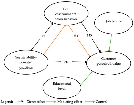 Research indicates that sustainability-oriented activities correlate with increased customer-perceived value. The strength of this connection may vary depending on factors such as employee engagement in sustainability practices, customer awareness, and the visibility of efforts. Notwithstanding this evidence, limited research has investigated the mediating mechanisms, particularly the impact of pro-environmental work behaviors among employees in the hotel sector and in developing nations such as Ghana. The ability of employees to embrace and implement sustainability-oriented practices in their day-to-day work affects how successfully these activities generate value that consumers perceive, therefore addressing this gap. From a Social Exchange Theory perspective, sustainability-oriented practices signal organizational commitment and ethical responsibility, prompting employees to reciprocate through enhanced service and environmentally conscious behavior, which customers in turn perceive as added value. From the discussion above, the following hypothesis was developed: