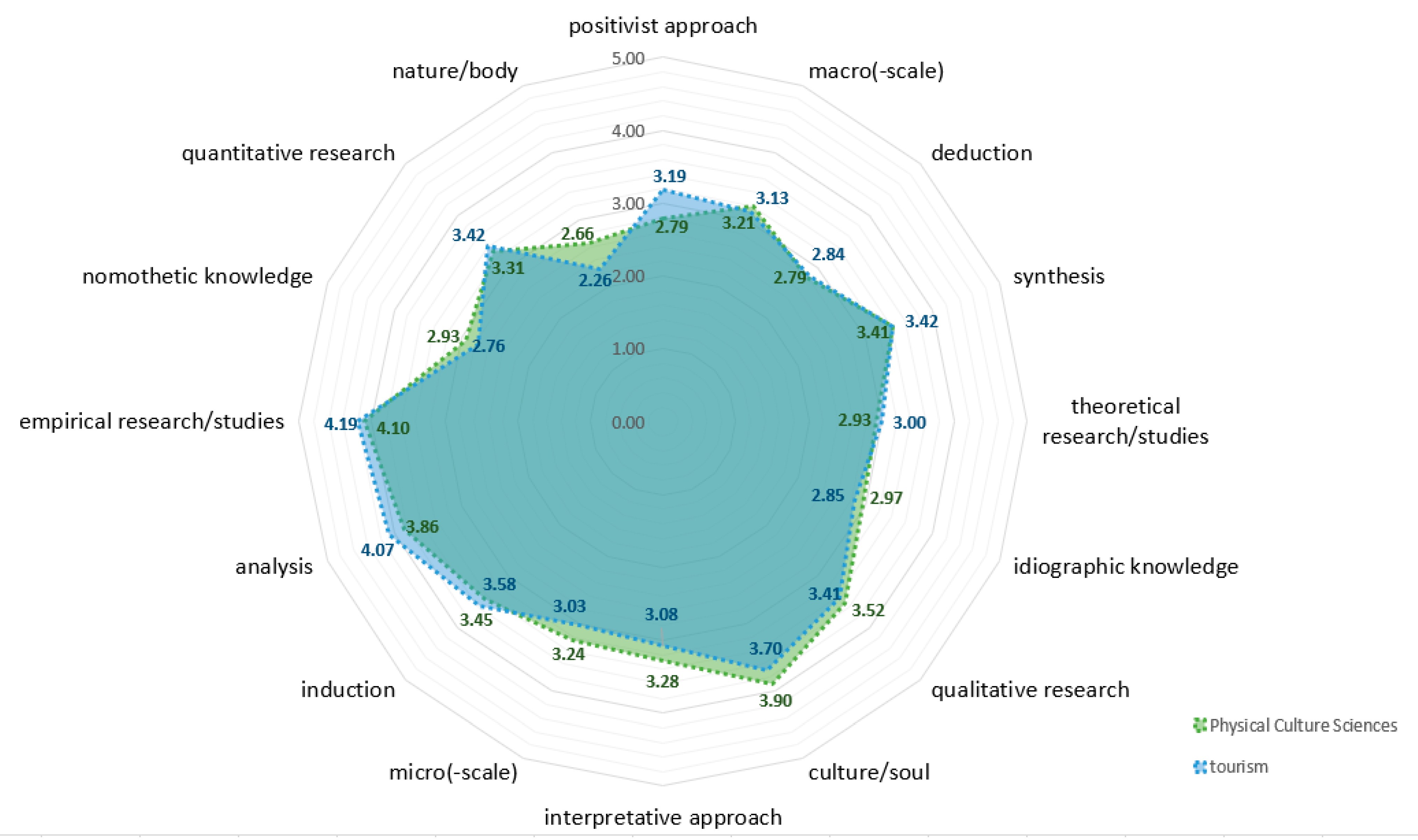 - Doctoral theses addressing tourism issues, formally completed within the PCS field, related (in accordance with the OECD classification) to the field of ‘Medical and Health Sciences’ and ‘Social Sciences’, have a fairly similar methodological profile, with the former dominated by research on nature/body, and the latter by a greater share of empirical, quantitative, macro-scale research, while the works related to the field of ‘Humanities’ are more theoretical in nature, based on qualitative research regarding cultural phenomena using an interpretative approach.