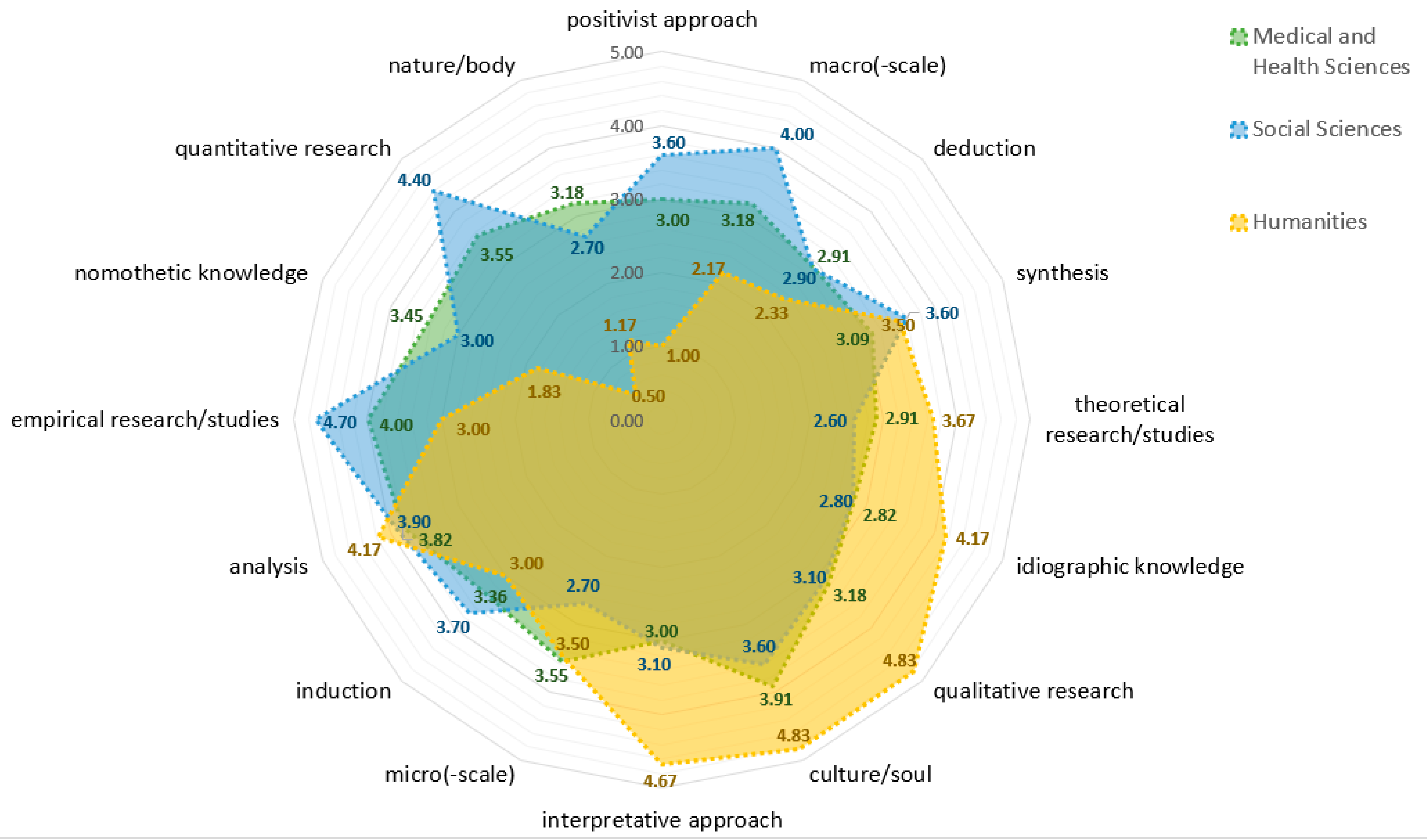 | 8 | For clarity of the radar chart, the pair of visualised features has been omitted: ‘mono-disciplinary research’ vs. ‘multi-/inter-disciplinary research’. This remark also applies to the subsequent charts presented in this article. |
