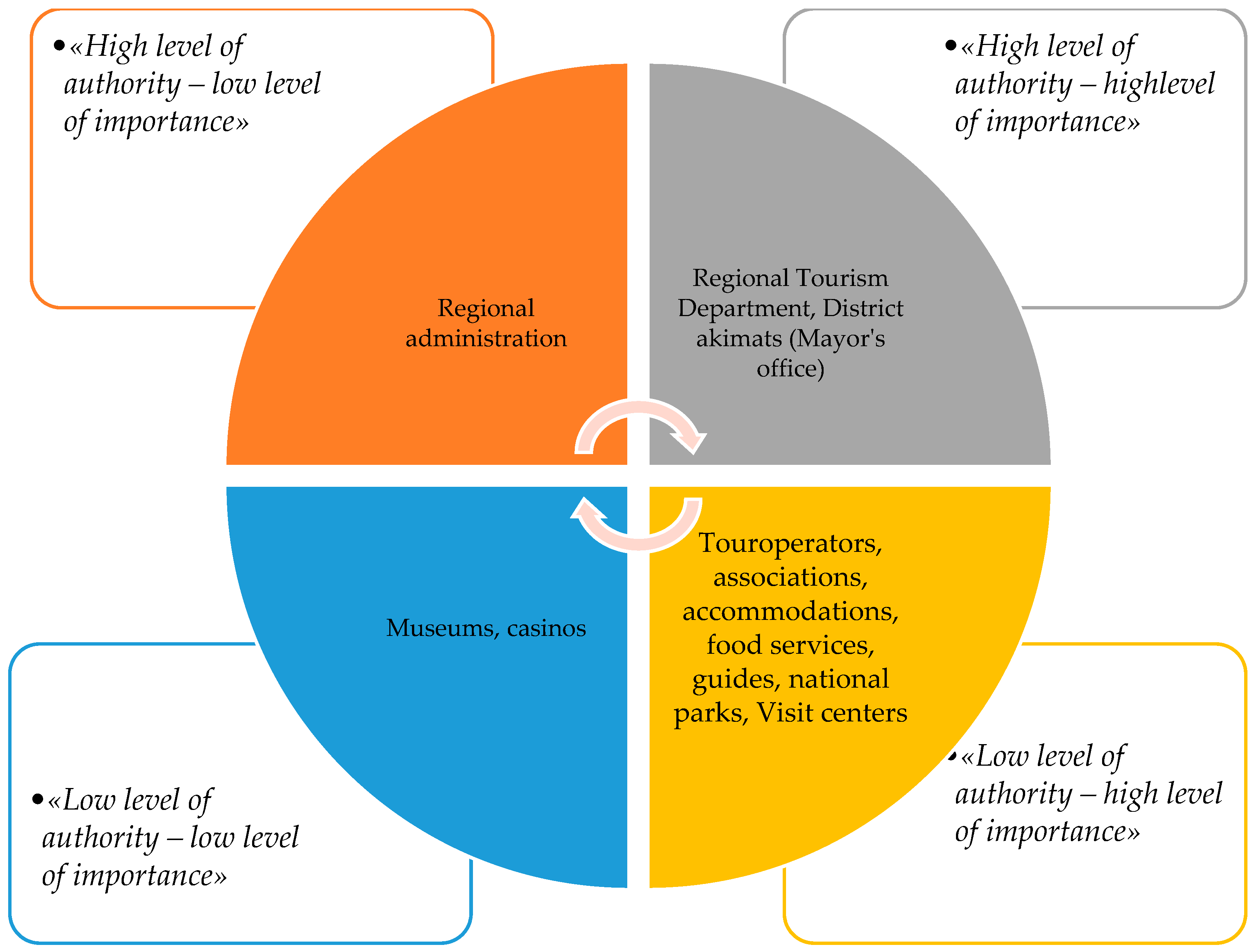 Prior studies also highlight the pivotal role of the regulatory framework—especially national and regional tourism development programs—in shaping governance effectiveness and stakeholder collaboration. In Kazakhstan, state-driven instruments such as strategic roadmaps and sectoral development projects establish formal guidance on investment, infrastructure, and service quality; however, their implementation varies considerably across regions. Incorporating these policy instruments into the analysis provides a more complete view of the institutional conditions that influence tourism management outcomes.