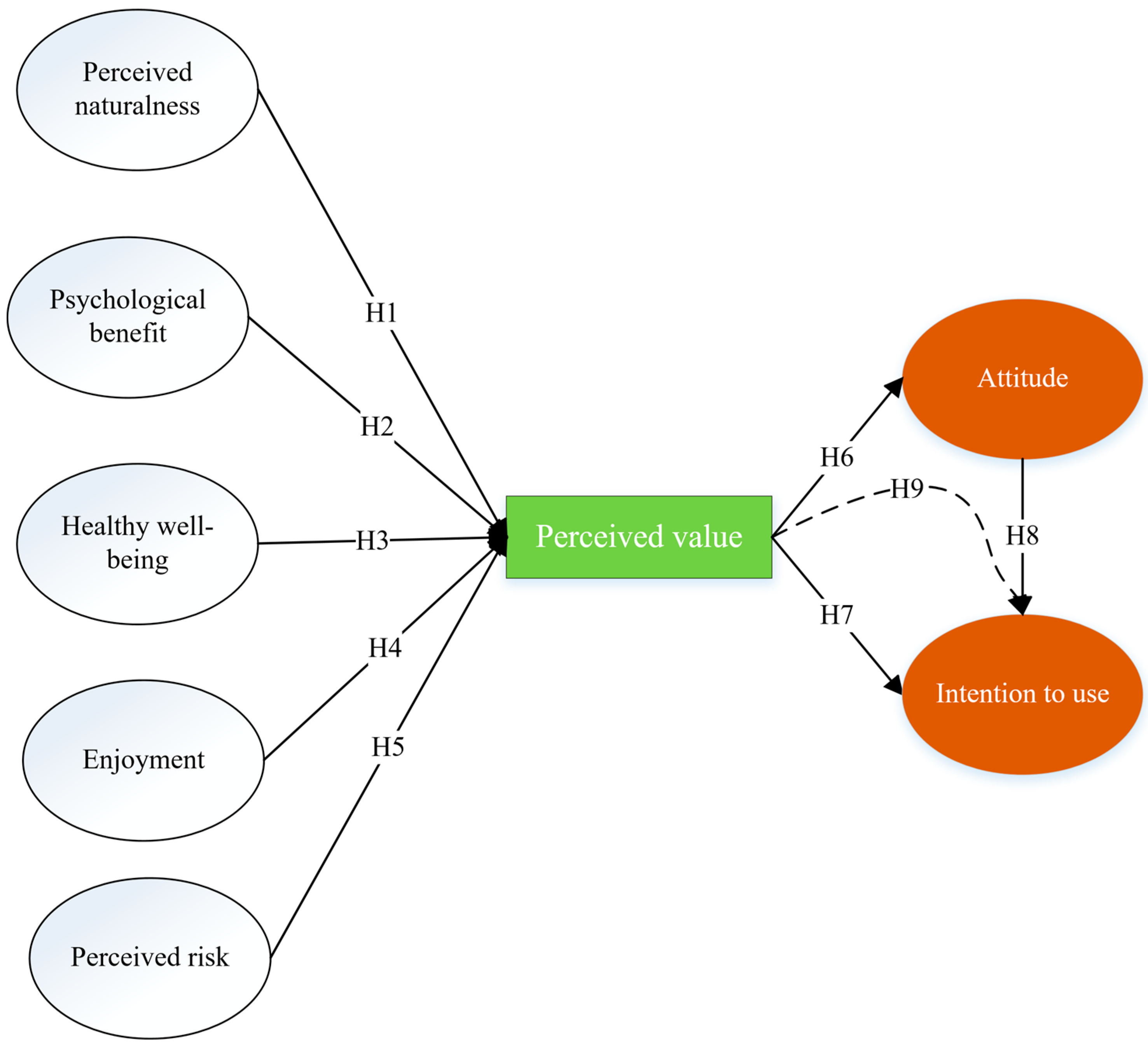 | Perceived Naturalness | Psychological Benefit | Healthy Well-Being | Enjoyment | Perceived Risk | Perceived Value | Attitude | Intention to Use | |
