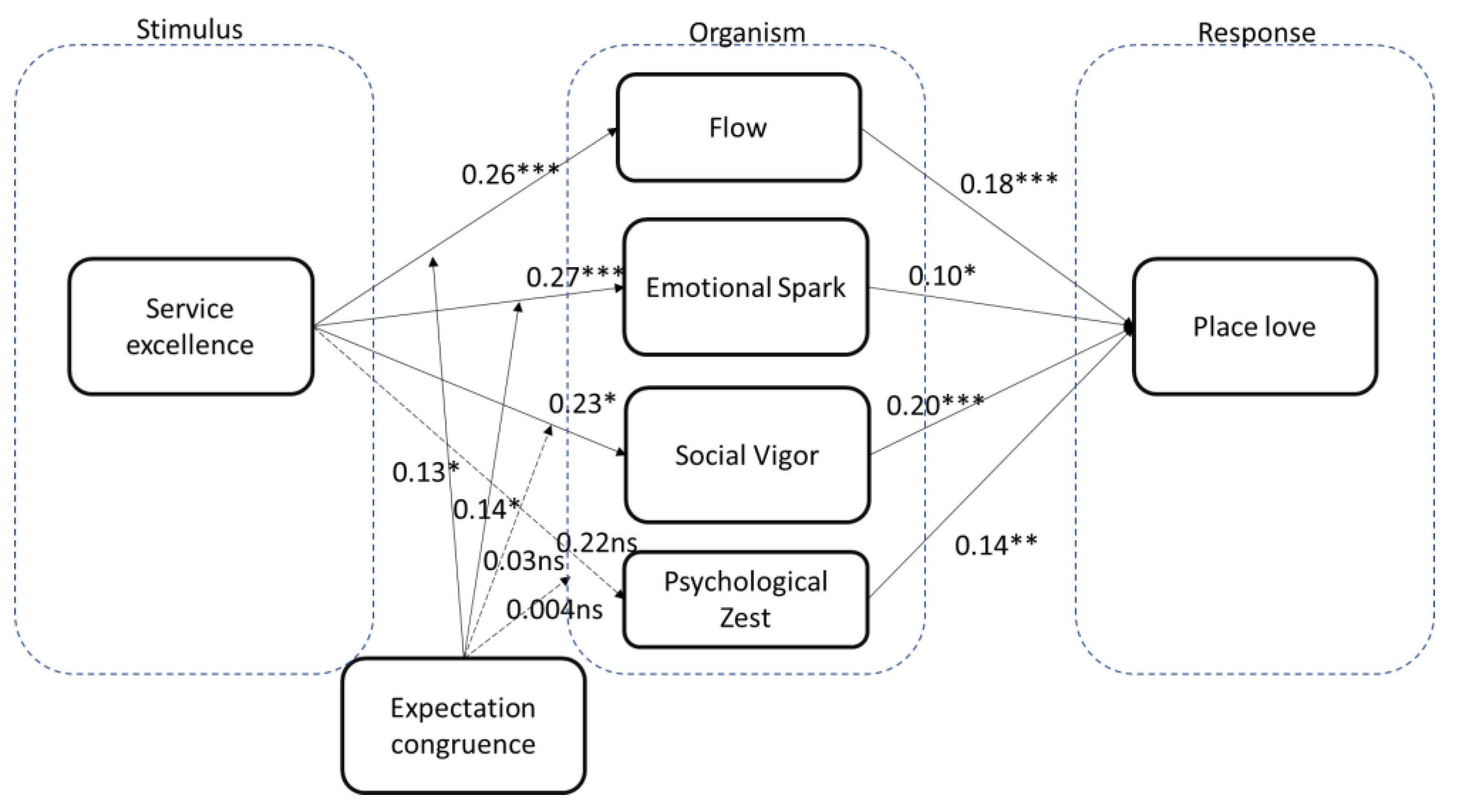 | Psychological zest ← Service excellence | 0.46 | 10.27 *** | Supported (+) |