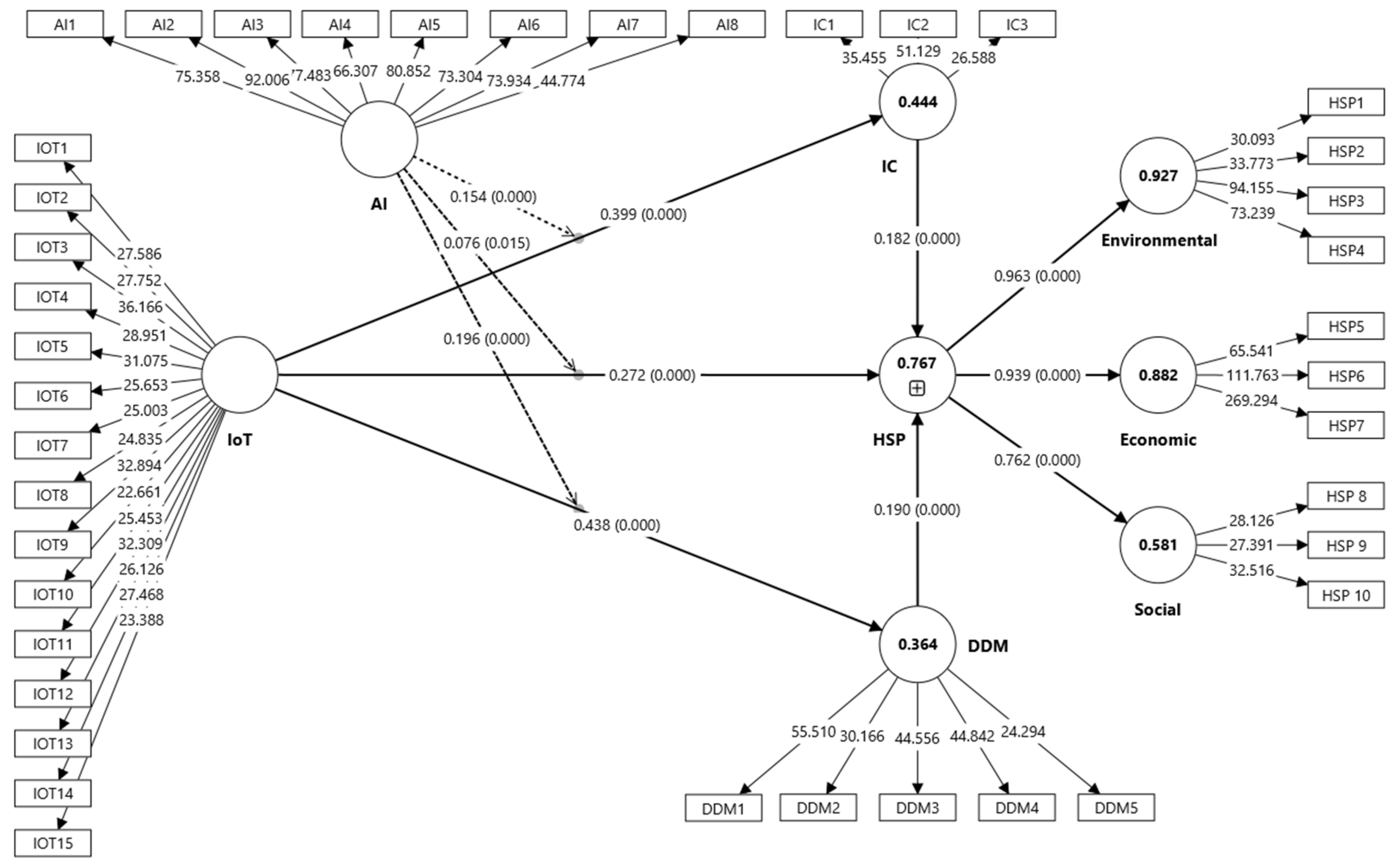 2.7. Mediating Effect of Data-Driven Decision-Making in the IoT–Hotel Sustainable Performance Relationship