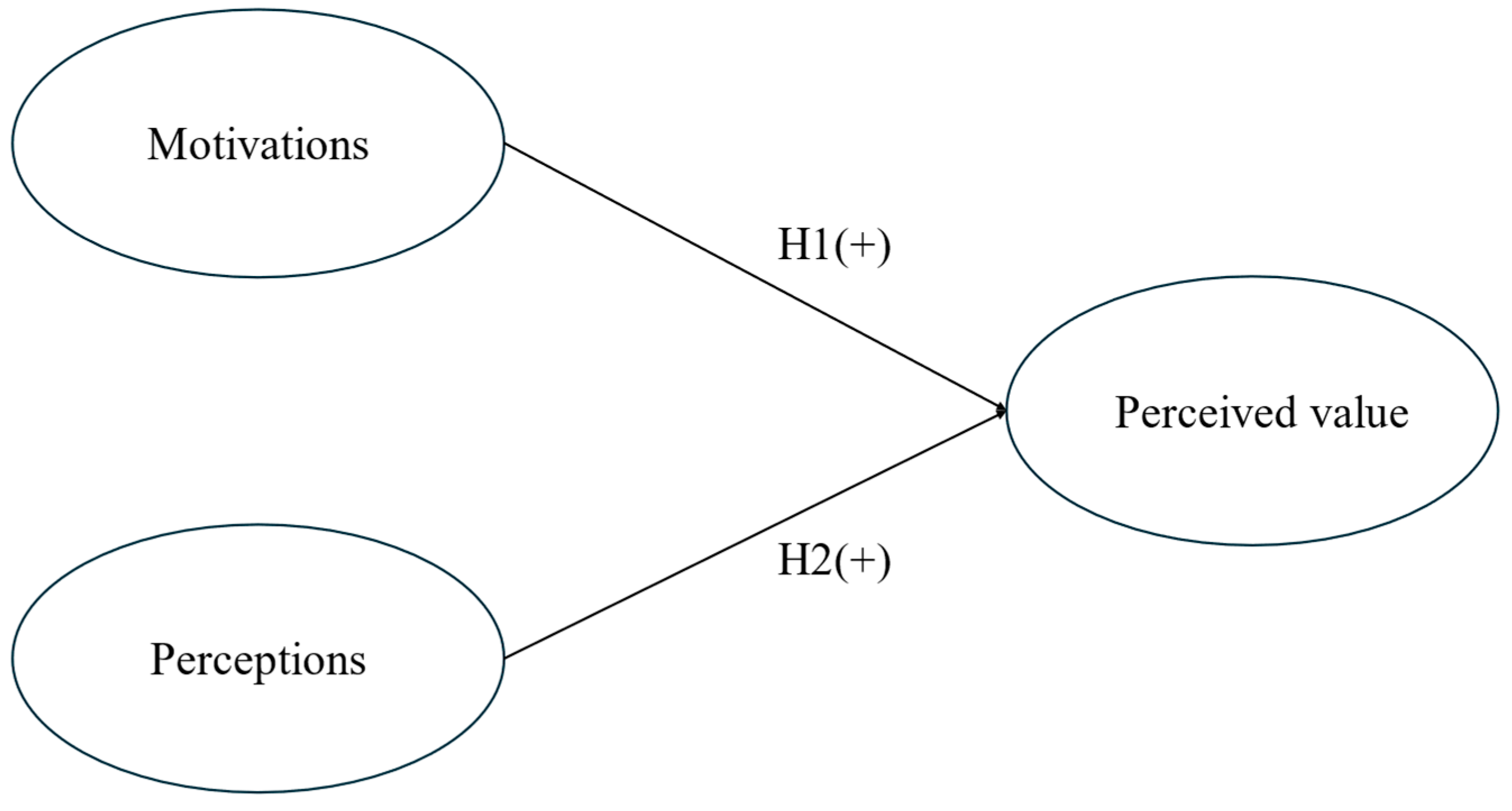 The study of the antecedents of perceived value has taken consumer value theory as its theoretical basis. This theory holds that consumer choices are explained by a combination of five sources of value: functional, social, emotional, epistemic and conditional (Sheth et al., 1991). Within this framework, motivations reflect ex ante expectations about the types of value sought in the experience, while perceptions reflect the ex post evaluation of those values during and after consumption. This separation is useful in tourism and wine tourism because it allows perceived value to be modelled as the result of prior impulses and subsequent experiential verification. Consolidated instruments such as PERVAL operationalize the construct with functional, emotional and social dimensions and have been widely adapted in tourism, reinforcing the validity of the value approach as a mediator between motivational input and perceptual evaluation (Gallarza et al., 2021; Sweeney & Soutar, 2001). Thus, recent work shows that the structure of the destination experience affects value and that this, in turn, explains satisfaction and loyalty, which justifies specifying motivations and perceptions as antecedents of value in the model (Kastenholz et al., 2022; D. Quadri-Felitti & Fiore, 2012; Yacoub et al., 2025).