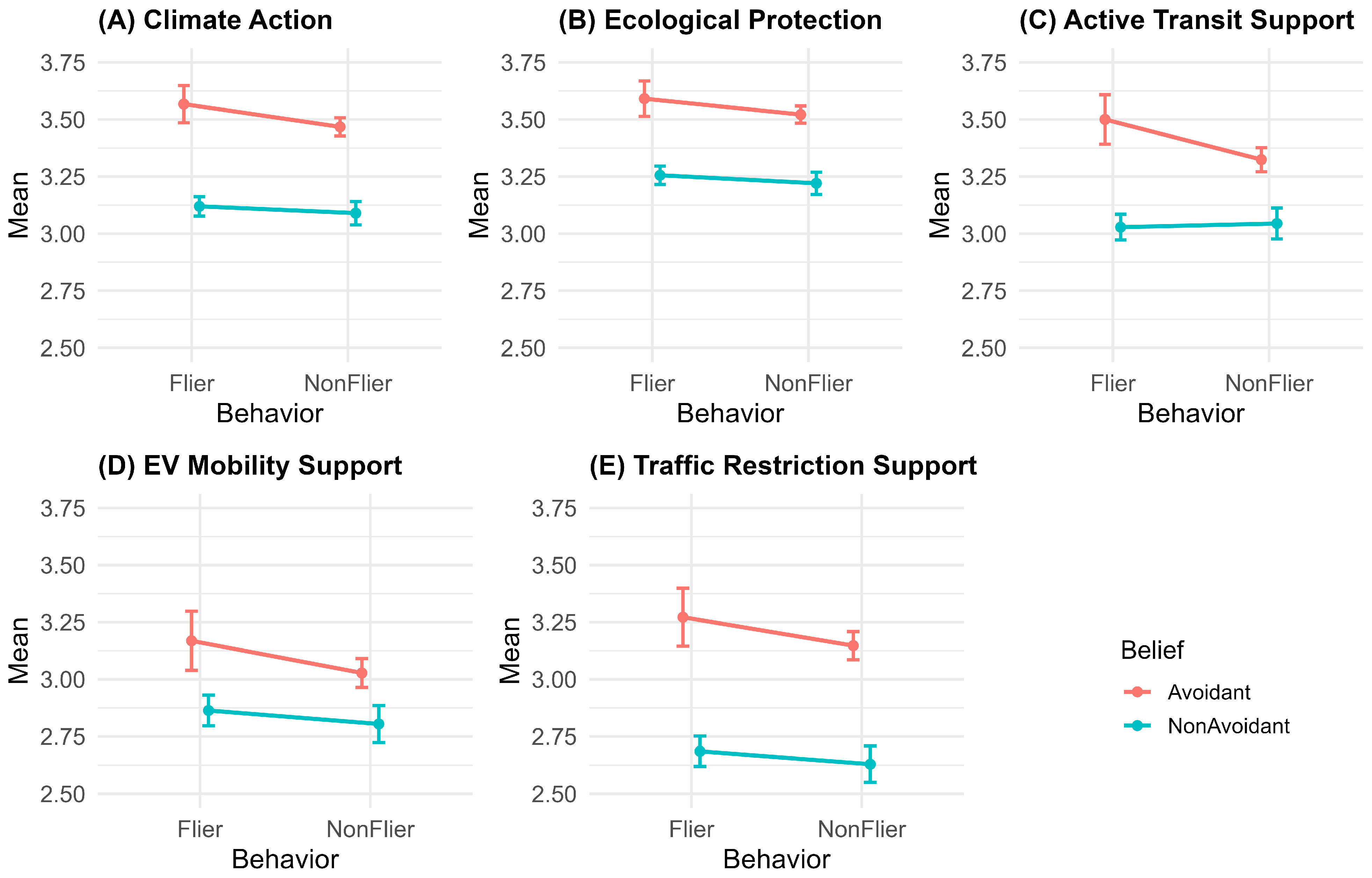 Avoidant + Non-Fliers will demonstrate the strongest support for environmental policies.