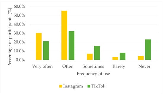 Figure 1. Distribution of responses to the question: How often do you use Instagram/TikTok?