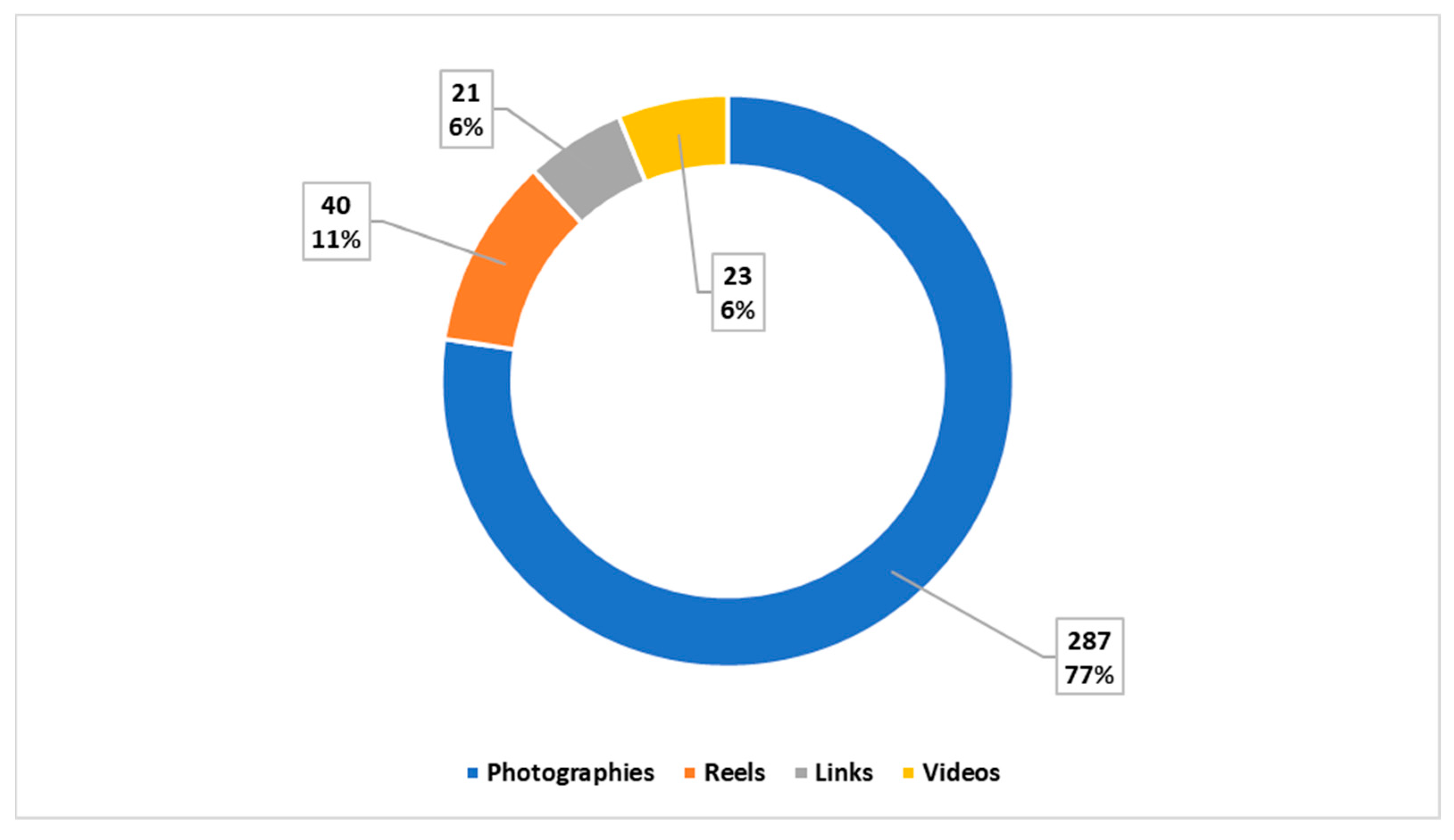| Photography | Video | Reels | Link | Total Publications | Publications per Day | |