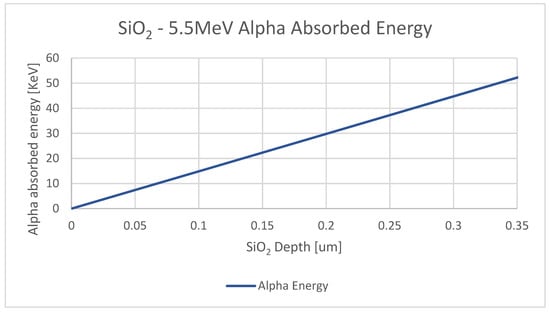 The number of e–h pairs generated by an alpha incident-, can be calculated by dividing the absorbed energy of a single alpha particle with the e–h pair generation energy. In the proposed Radon Sensor, the STI layer thickness is . The absorbed energy is calculated using popular SRIM software [8]. As shown in Figure 2e–h pair generation energy in is 17 eV [9].