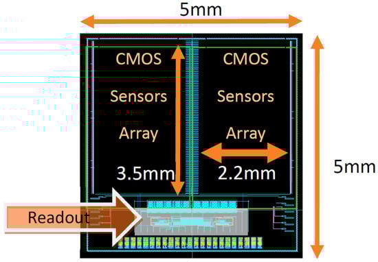 The sensors array is built by sub-pixels, where each sub-pixel sensing area is , so that the entire array sensing area is .