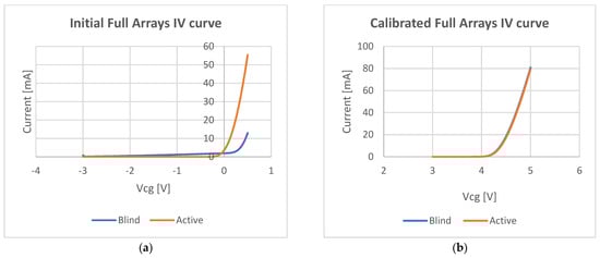 Full Arrays IV Curves. (a) initial IV curve; (b) calibrated IV curve.