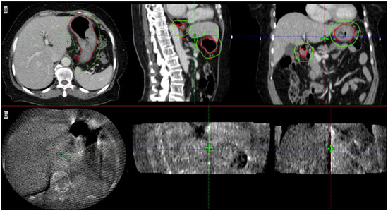 - Chun, S.-J.; Jeon, S.H.; Chie, E.K. A Case Report of Salvage Radiotherapy for a Patient with Recurrent Gastric Cancer and Multiple Comorbidities Using Real-time MRI-guided Adaptive Treatment System. Cureus 2018, 10, e2471. [Google Scholar] [CrossRef] [PubMed] [Green Version]