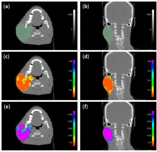 p = 68%, %Acc = 69%, %Prec = 80%, %Bal Acc = 68.8%, and AUC = 0.664. The six selected features were “GLDM Gray Level Non-Uniformity”, “GLSZM High Gray Level Zone Emphasis”, “GLRLM Gray Level Non-Uniformity”, “GLRLM Run Length Non-Uniformity Normalized”, “GLCM Joint Entropy”, and “GLSZM Gray Level Non-Uniformity”, the first five of which were made into feature maps for 2LTF determination. “GLDM Gray Level Non-Uniformity” measures the similarity of gray-level intensity values in the image, with lower values correlating with greater similarity in intensity values [