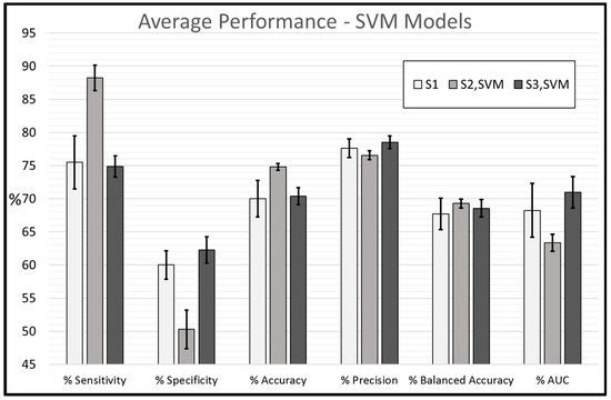 p < 0.05). Unlike the SVM models, 2LTFs had no impact on model specificity as the average across all seven models remained unchanged (%S