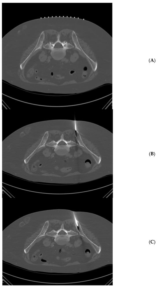 - Zensen, S.; Selvaretnam, S.; Opitz, M.; Bos, D.; Haubold, J.; Theysohn, J.; Forsting, M.; Guberina, N.; Wetter, A. Differences in Radiation Exposure of CT-Guided Percutaneous Manual and Powered Drill Bone Biopsy. Cardiovasc. Intervent. Radiol. 2021, 44, 1430–1438. [Google Scholar] [CrossRef] [PubMed] [PubMed Central]