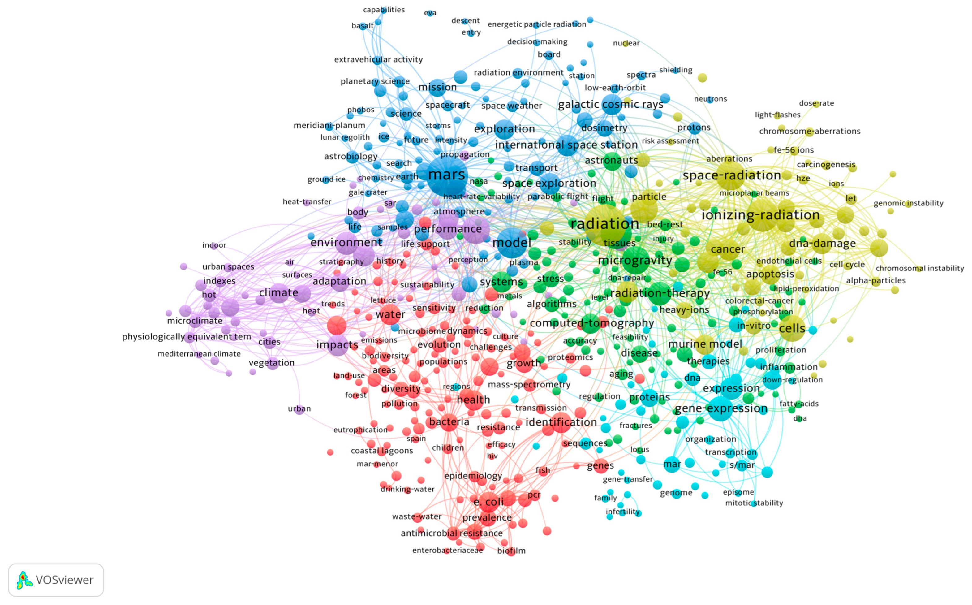3.2. Evolution of Bibliographic Terms for Space Radiation, Mars, Galactic Cosmic Rays, Cognition, and Humans from 2000 to 2009