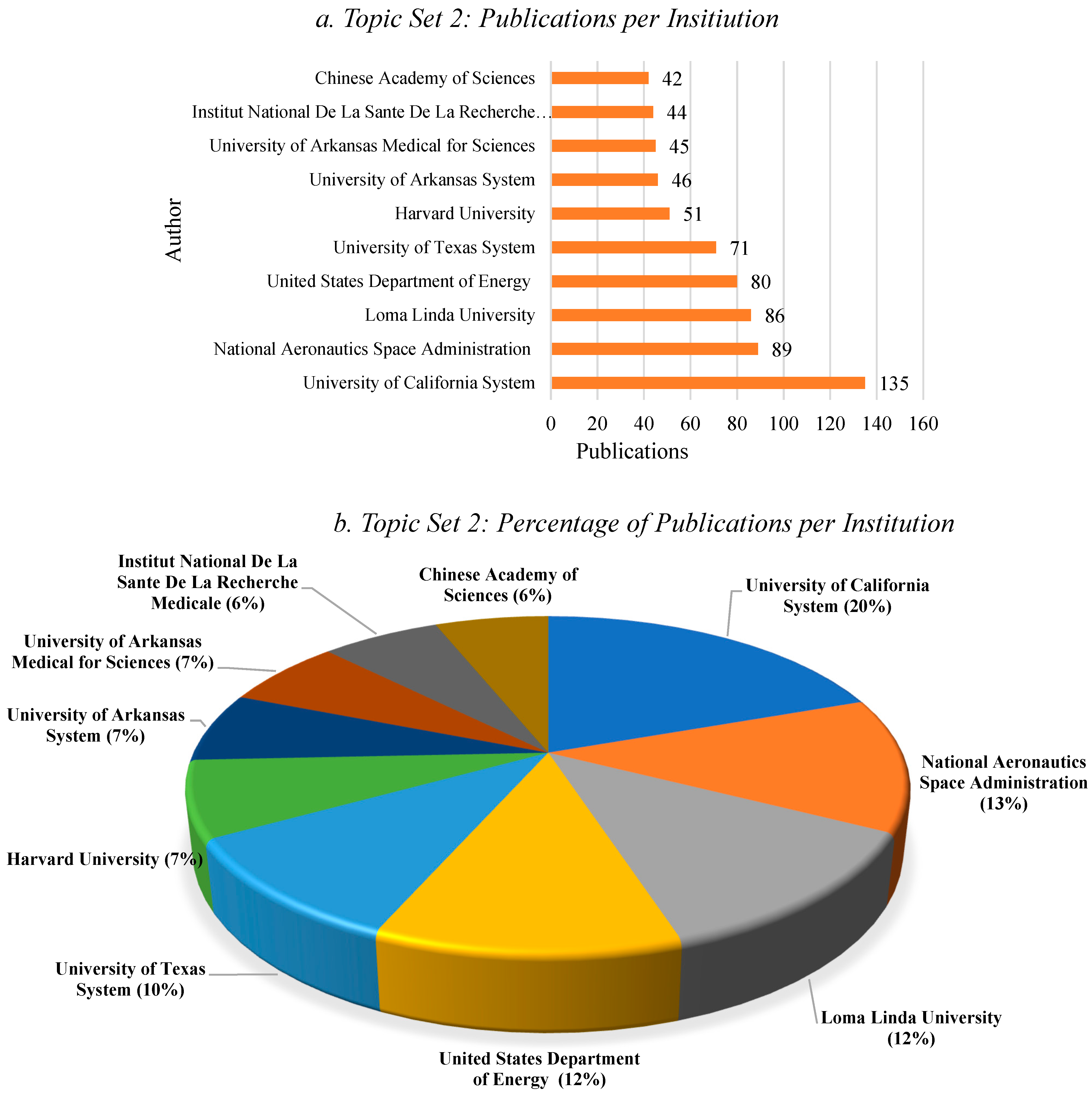 4.3. Institutional Analysis for Topic Sets 1 and 2 as They Correspond with Top Producing Countries