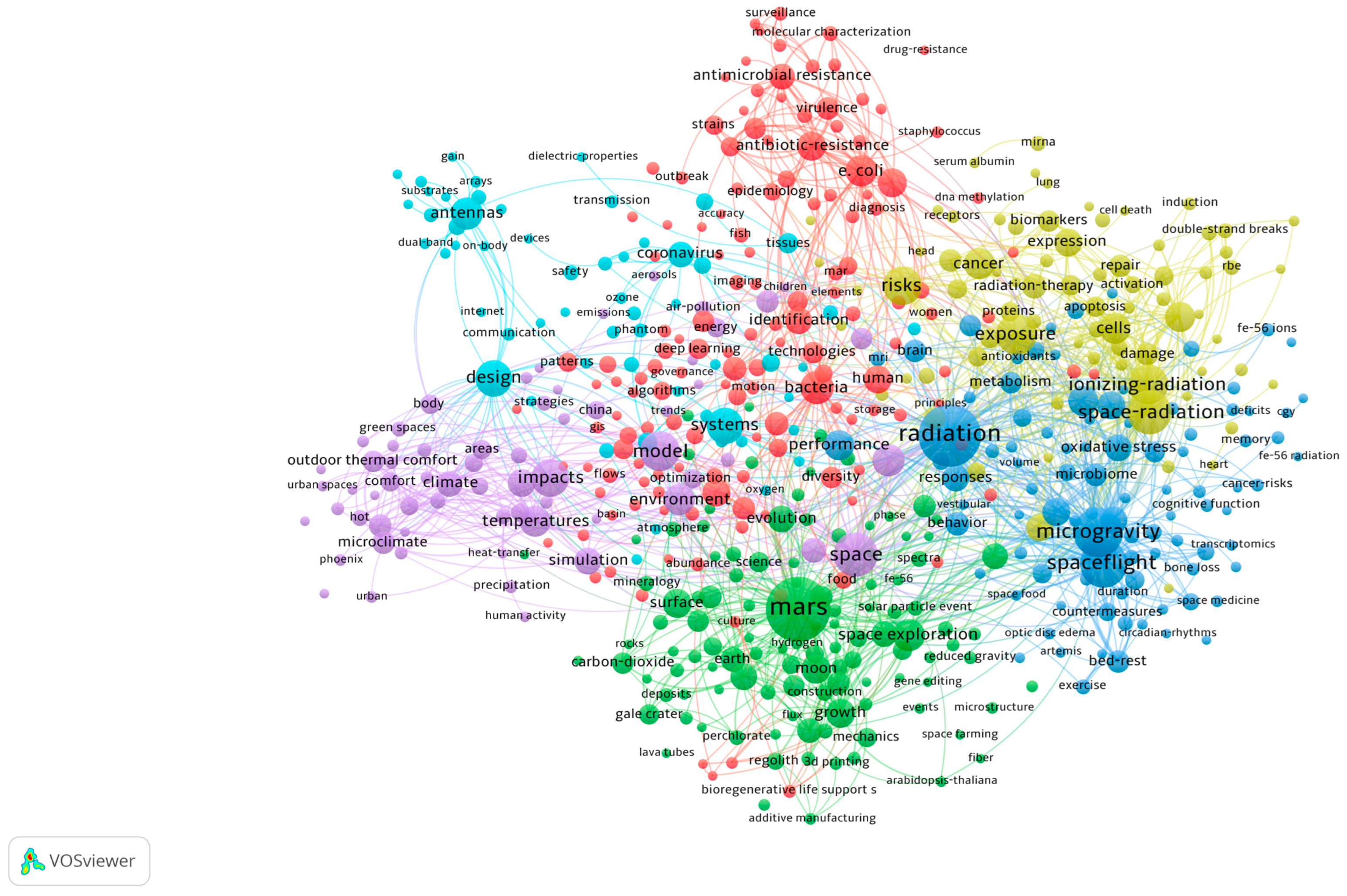 3.4. Evolution of Bibliographic Terms for Space Radiation, Mars, Galactic Cosmic Rays, Cognition, and Humans from 2020 to 2023