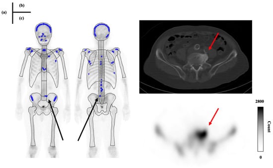 - Van den Wyngaert, T.; Strobel, K.; Kampen, W.U.; Kuwert, T.; van der Bruggen, W.; Mohan, H.K.; Gnanasegaran, G.; Delgado-Bolton, R.; Weber, W.A.; Beheshti, M.; et al. The EANM practice guidelines for bone scintigraphy. Eur. J. Nucl. Med. Mol. Imaging 2016, 43, 1723–1738. [Google Scholar] [CrossRef] [PubMed]