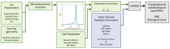 - Bellinzona, V.E.; Attili, A.; Cordoni, F.; Missiaggia, M.; Tommasino, F.; Scifoni, E.; La Tessa, C. Linking microdosimetric measurements to biological effectiveness: A review of theoretical aspects of MKM and other models. Front. Phys. 2020, 8, 578492. [Google Scholar] [CrossRef]
