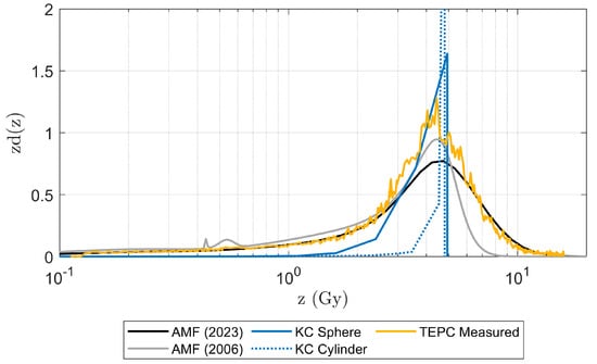 - Borak, T.B.; Doke, T.; Fuse, T.; Guetersloh, S.; Heilbronn, L.; Hara, K.; Moyers, M.; Suzuki, S.; Taddei, P.; Terasawa, K.; et al. Comparisons of LET distributions for protons with energies between 50 and 200 MeV determined using a spherical Tissue-Equivalent Proportional Counter (TEPC) and a position-sensitive silicon spectrometer (RRMD-III). Radiat. Res. 2004, 162, 687–692. [Google Scholar] [CrossRef]