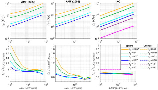 - Sato, T.; Matsuya, Y.; Ogawa, T.; Kai, T.; Hirata, Y.; Tsuda, S.; Parisi, A. Improvement of the hybrid approach between Monte Carlo simulation and analytical function for calculating microdosimetric probability densities in macroscopic matter. Phys. Med. Biol. 2023, 68, 155005. [Google Scholar] [CrossRef]