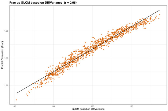 Alongside these standardized families, fractal descriptors, particularly fractal dimension (Frac) and lacunarity (Lac), remain attractive because they target explicitly multiscale properties: Frac quantifies boundary or texture roughness across scales, whereas Lac characterizes the heterogeneity of gaps or voids as a function of scale [11,12,13]. Applications spanning oncology and neuroimaging report encouraging, though heterogeneous, associations with grade, phenotype, and outcome [14,15,16].
