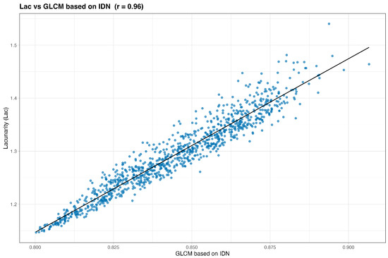 Finally, we relate these measures to standardized radiomics. Larger D tends to co-vary with contrast and short-run behavior—fine-scale roughness and rapid gray-level changes—captured by descriptors such as GLCM contrast and dissimilarity and by short-run GLRLM measures [5,6]. In contrast, larger lacunarity tends to align with a large, coherent structure—broader zones, pronounced voids, and greater homogeneity—summarized by GLSZM large-area and zone-size statistics, GLRLM long-run and high-gray-level emphases, and GLCM homogeneity and inverse-difference measures [7,9]. Because these tendencies are related but not identical, the two fractal descriptors offer complementary views of multiscale heterogeneity and are most informative when interpreted alongside IBSI-standardized features.