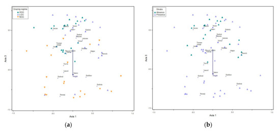 Avian communities are affected by the presence of transhumant livestock in the pseudo-alpine grassland ecosystems of South Pindos Mountains through the differences in vegetation structure. Bird communities among the two grazed grasslands (LGG and HGG) showed a lower separation than the communities between the two grazed (LGG and HGG) and the non-grazed (NGG) one. Transhumance is highlighted as an ecological management technique that shapes and maintains stable and dynamic the upland grasslands, while overcoming the plethora of ecological problems derived by intensive, sedentary livestock activities in high altitude ecosystems [