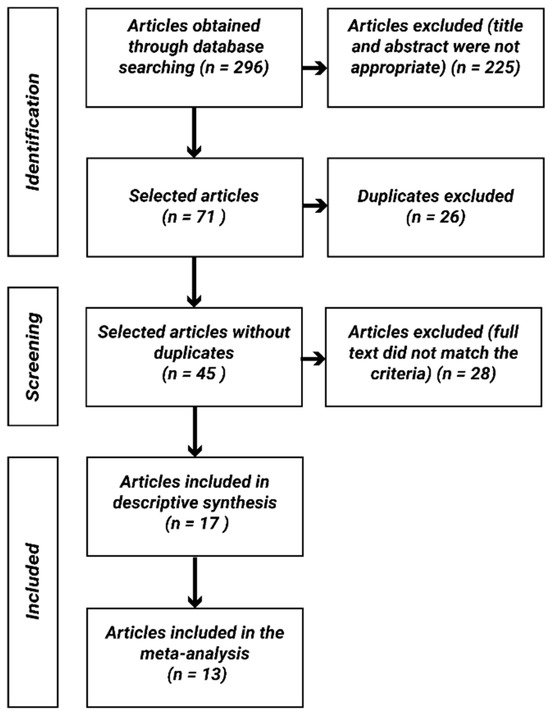 Flow chart of the literature search and the article selection for the meta-analysis (PRISMA 2020) [35].
